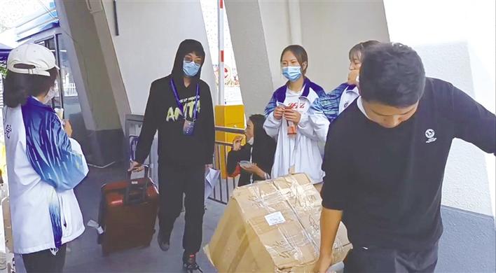 據迎新工作人員介紹,新生入校后,黨員志愿服務隊會對新生進行身份核驗、測體溫,學生志愿服務隊會幫新生將行李搬運至新生報到處,新生在報到處辦理好入學手續(xù)后,志愿服務隊的工作人員還會負責將學生行李搬運至新生宿舍。