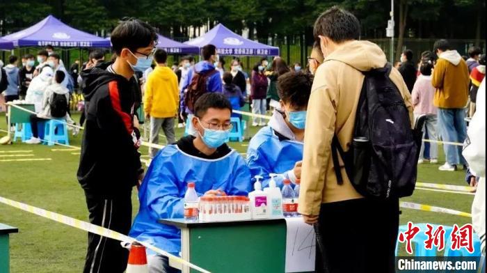 電子科大學(xué)生志愿者協(xié)助核酸檢測?!∷拇ㄊ〗逃龔d供圖