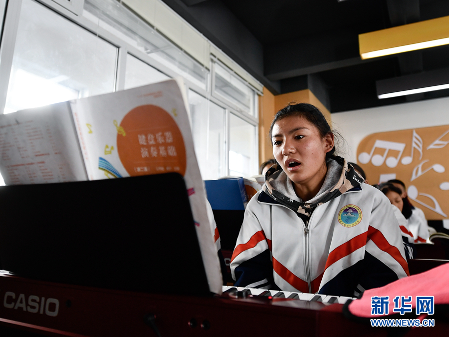 在果洛藏族自治州職業(yè)技術(shù)學(xué)校,2020級學(xué)前教育專業(yè)學(xué)生楊央在上音樂課。(資料圖)新華社記者 張龍 攝