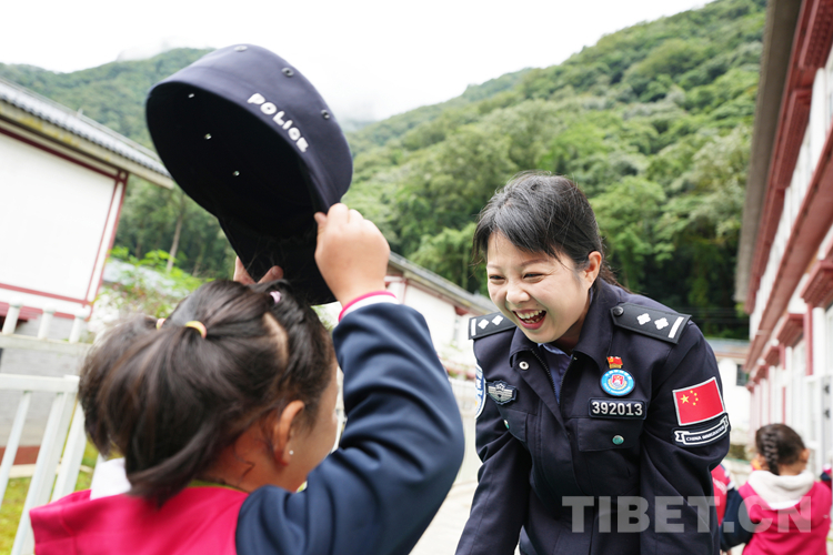 圖為亞東出入境邊防檢查站民警與龐達(dá)村雙語(yǔ)幼兒園小朋友一起玩耍
