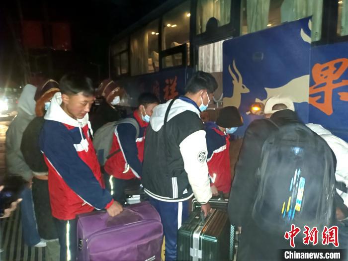 在地處數(shù)百公里外的西寧的青海省三江源民族中學(xué)就讀的初二學(xué)生合熱,一大早穿著過年新買的衣服,推著行李箱,早早到了指定乘車點(diǎn)。