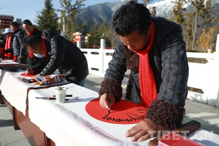 在林芝市藏醫(yī)院工作的巴桑次仁,是林芝市文聯(lián)書(shū)法家協(xié)會(huì)會(huì)員。當(dāng)天一大早,林芝市文聯(lián)書(shū)法家協(xié)會(huì)的各位書(shū)法家揮毫潑墨,不停地為群眾寫(xiě)下新年祈福和愿望?,F(xiàn)場(chǎng)群眾簇?fù)碛^摩,與書(shū)法家們認(rèn)真交流,臉上不時(shí)揚(yáng)起幸福的笑容。據(jù)悉,活動(dòng)當(dāng)天,書(shū)法家協(xié)會(huì)共送出100余副春聯(lián)、150余幅字畫(huà)。