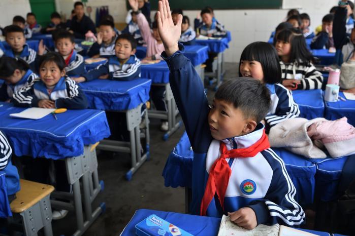 藥山鎮(zhèn)中心小學(xué)的同學(xué)們?cè)陂喿x課上與老師積極互動(dòng)。