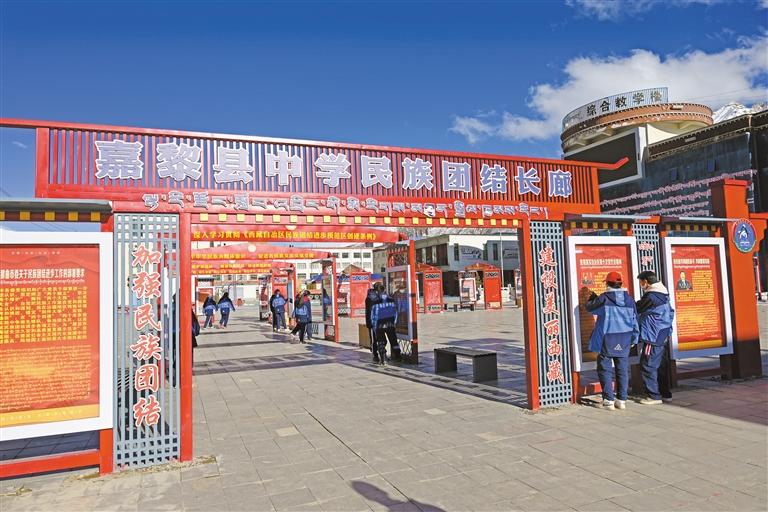 那曲市嘉黎縣中學民族團結長廊。