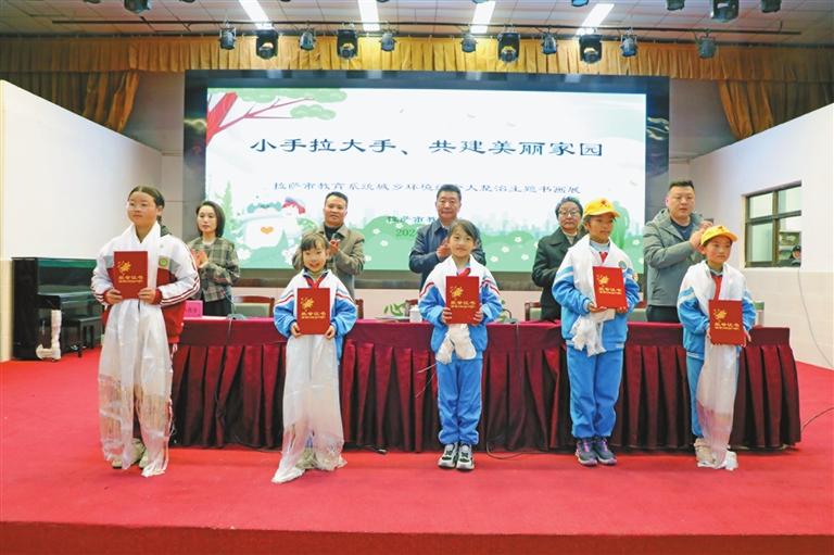 近日,拉薩市教育系統(tǒng)舉辦“小手拉大手、共建美麗家園”主題書(shū)畫(huà)展。全市各級(jí)各類學(xué)校積極參與書(shū)畫(huà)作品征集,展示拉薩市青少年對(duì)美麗家園的熱愛(ài)以及參與環(huán)境整治的堅(jiān)定決心。