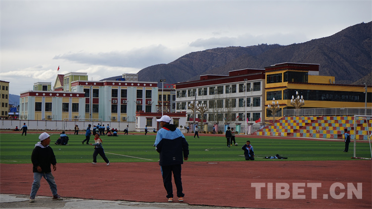 春光正盛,西藏自治區(qū)昌都市洛隆縣第一小學(xué)已經(jīng)開學(xué)第四周了。課間休息時間,學(xué)生們?nèi)宄扇?,有的在嬉戲打鬧,有的在散步,還有的依然在課桌前看書、寫字?;蛟S是因?yàn)楦咴貐^(qū)本就空氣稀薄,明媚的陽光照在身上讓人暖得發(fā)熱,記者恍惚間仿佛回到了自己的學(xué)生時代。