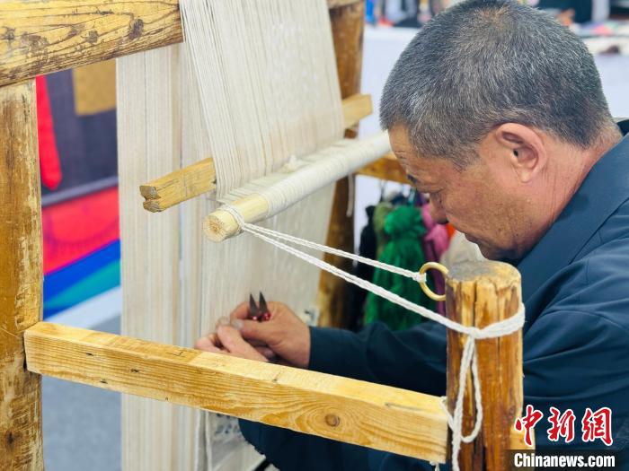 圖為國家鄉(xiāng)村工匠名師現(xiàn)場(chǎng)編織藏毯。中新網(wǎng)記者 孫睿 攝