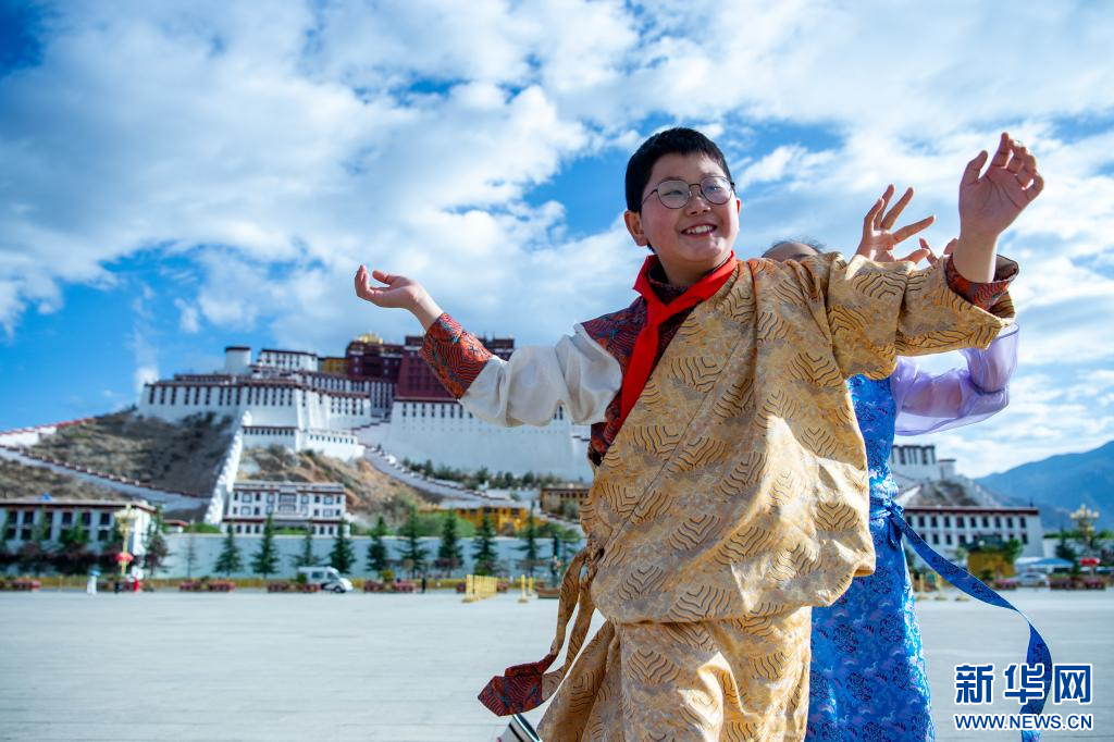 “六一”國際兒童節(jié),小朋友們?cè)谖鞑刈灾螀^(qū)拉薩市布達(dá)拉宮廣場歡慶自己的節(jié)日。