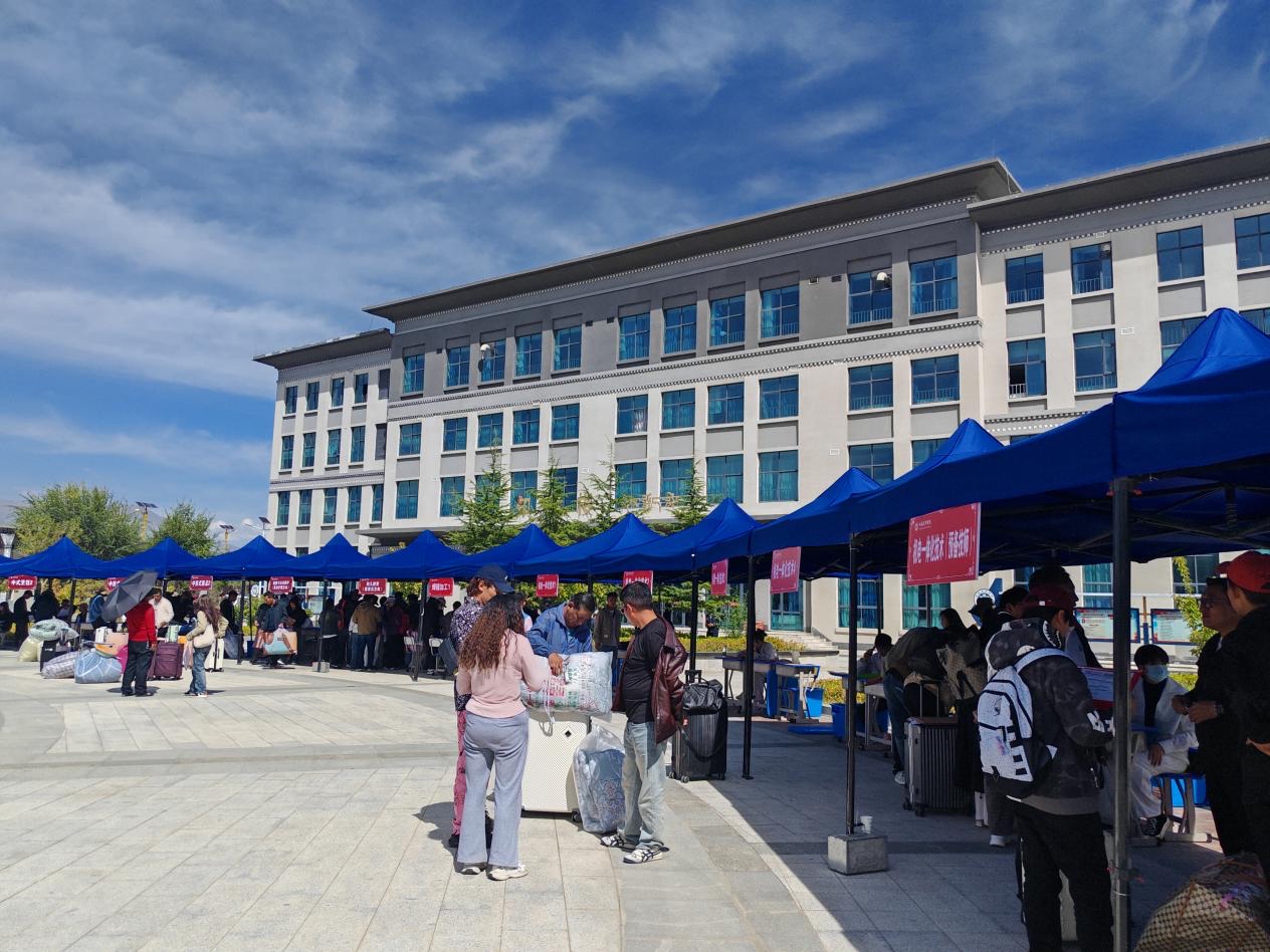 在西藏技師學(xué)院校園里,隨處可見“歡迎新同學(xué)”的標(biāo)語和展板,校園內(nèi)還設(shè)置了立體合影展臺(tái)供學(xué)生留影,營(yíng)造出了濃濃的暖心氛圍。學(xué)生和家長(zhǎng)們帶著大包小包的行李,秩序井然地進(jìn)入校園,找到所錄取專業(yè)報(bào)到點(diǎn)前完成入學(xué)手續(xù),各班班主任都等候在報(bào)到點(diǎn),耐心地回答學(xué)生們的疑問、專業(yè)學(xué)習(xí)情況、體檢和助學(xué)金的申請(qǐng)等問題。