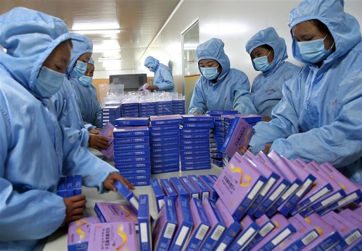 圖為貧困群眾在西藏金哈達(dá)藥業(yè)有限公司實現(xiàn)就業(yè),整理即將出售的藥品。記者 姚海全 攝