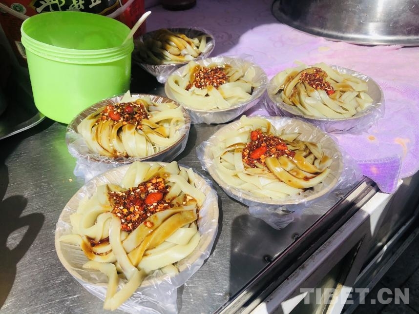中國(guó)西藏網(wǎng)訊 在四川省甘孜藏族自治州甘孜縣城的大街小巷,你可以看到這樣的小車攤位,人們?cè)陂e暇之時(shí)會(huì)圍坐在這里吃涼粉,甘孜的涼粉以豌豆淀粉制作而成,因口味純正、風(fēng)味地道而深受人們的喜愛。在這暖春里,有了美味的涼粉作伴,仿佛也會(huì)變得更溫暖。
