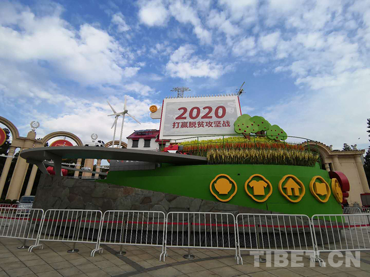圖為曾在慶祝中華人民共和國成立70周年大會群眾游行方陣中亮相的脫貧攻堅彩車,側(cè)面的黃色圖標所代表的就是兩不愁、三保障 攝影:楊月云