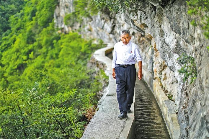 村民們親切地把水渠稱作“大發(fā)渠”。正是在老支書黃大發(fā)的帶領(lǐng)下,村民們鋼釬鑿、風(fēng)鉆敲,硬是在峭壁懸崖間,挖出一條近10公里的“天渠”。