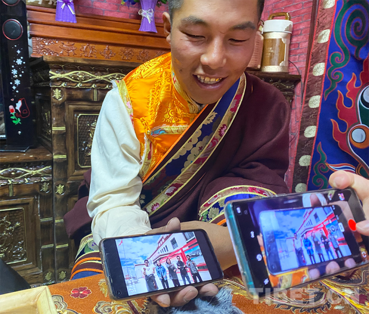 圖為西藏自治區(qū)阿里地區(qū)改則縣圓夢新居易地扶貧搬遷點居民扎西頓珠在向記者展示自己的抖音視頻 攝影:王媛媛