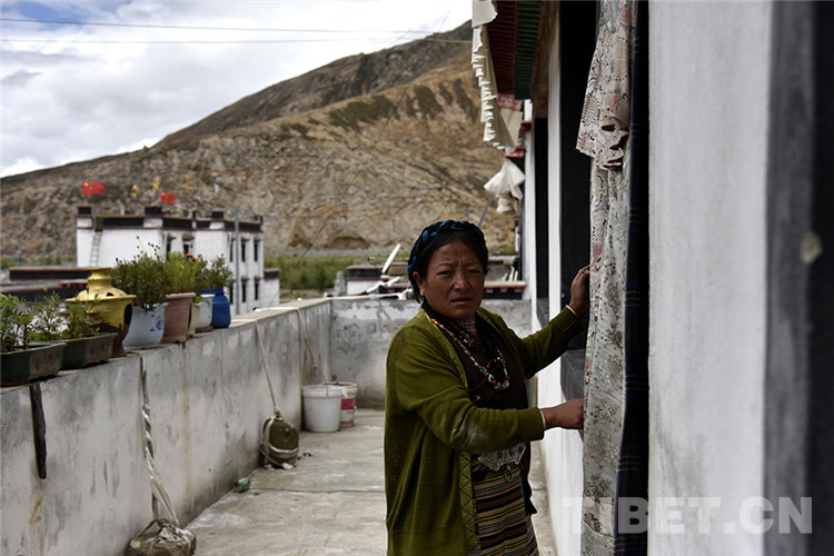 圖為達(dá)那答鄉(xiāng)政府新區(qū)易地扶貧搬遷點(diǎn)居民尼瑪普赤在自家門前 攝影:王媛媛