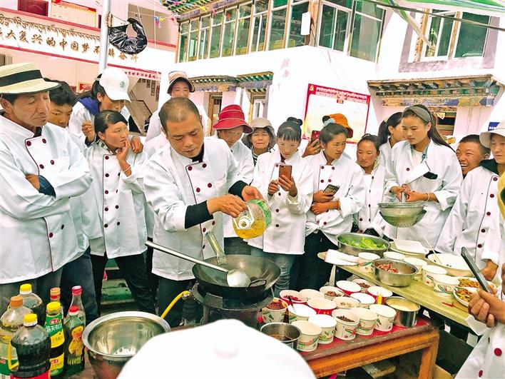 為幫助農(nóng)牧民群眾實現(xiàn)轉(zhuǎn)移就業(yè),近日,西藏林芝市朗縣舉辦中式烹調(diào)師技能培訓(xùn)班,50余名農(nóng)牧民群眾參加培訓(xùn)。授課老師向?qū)W員傳授了中式家常菜肴的烹飪方法,并對基本刀工、食材的選用、調(diào)料的搭配、火候的掌握等作了詳細的介紹。
