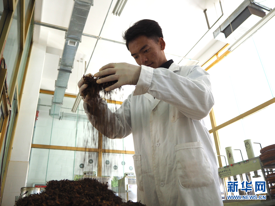 班瑪縣藏雪茶產(chǎn)業(yè)開(kāi)發(fā)有限責(zé)任公司工作人員在晾曬藏雪茶。(資料圖)新華社記者 白瑪央措 攝