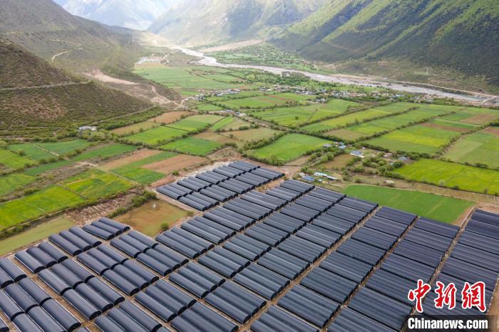 圖為航拍波密縣傾多鎮(zhèn)聯(lián)村共建產(chǎn)業(yè)示范園區(qū)的靈芝大棚。 江飛波 攝