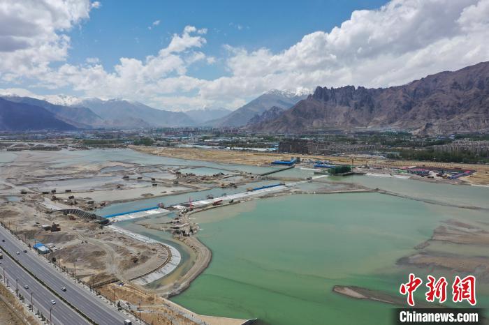圖為西藏拉薩河河勢控導工程(濱河花園段)成功下閘蓄水 水電基礎局 供圖