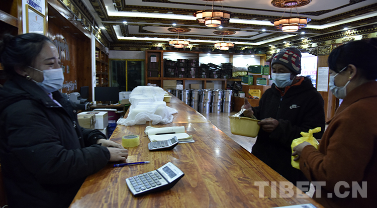 圖為嘎?tīng)柕律釁^(qū)銷售總店里的收奶員巴桑 攝影:王媛媛