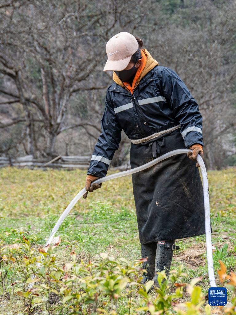 在西藏林芝市波密縣藏芝星農(nóng)業(yè)科技有限公司茶園里,茶田管護(hù)員正忙著給茶樹(shù)澆水除草,門口的項(xiàng)目牌上展示著茶樹(shù)品種、生長(zhǎng)周期和管護(hù)注意事項(xiàng)。“茶園讓我們?cè)黾恿诵碌氖杖??!笨粗F(xiàn)代化的連片茶田,在此工作的古鄉(xiāng)雪瓦卡村32歲的村民索朗措姆由衷感慨。