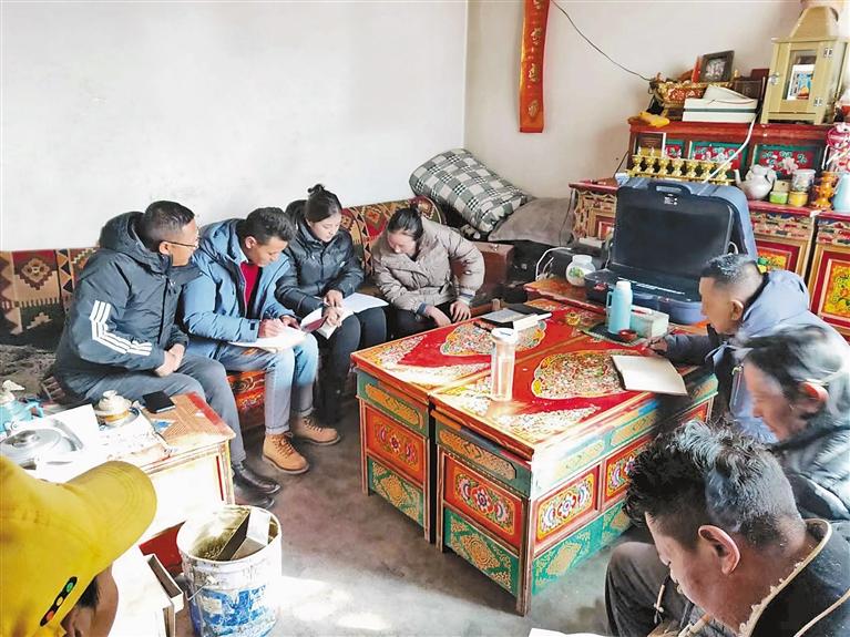 圖為工作組入戶調(diào)研。記者 達珍 攝
