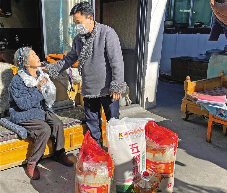 圖為山南市人大常委會(huì)工作人員深入澤當(dāng)社區(qū)困難群眾家中慰問。記者 巴桑旺姆 攝