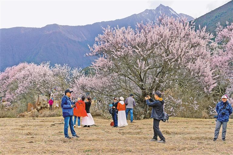 圖為游客在米林縣索松村拍照留影。記者 格桑吉美 攝