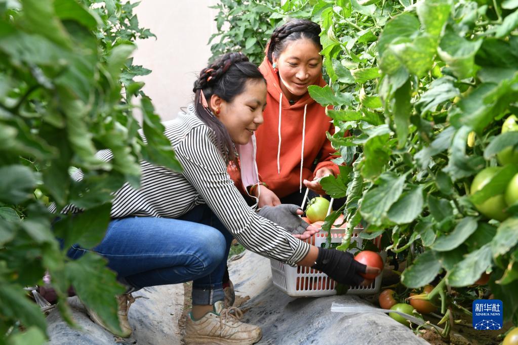 工作人員在西藏阿里地區(qū)噶爾縣生態(tài)農(nóng)業(yè)產(chǎn)業(yè)園采摘西紅柿(2018年8月1日攝)。新華社記者 張汝鋒 攝