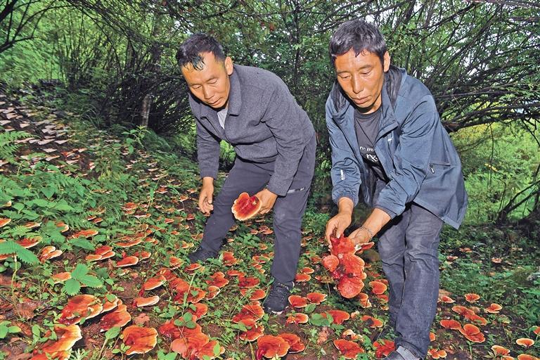 圖為吉隆縣熱瑪村熱瑪生物科技有限公司工作人員在采收種植的靈芝。 記者 李洲 攝