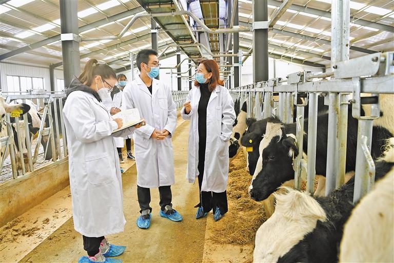 圖為達(dá)孜區(qū)高標(biāo)準(zhǔn)良種奶牛養(yǎng)殖示范中心的員工在牛場工作。記者 李洲 攝