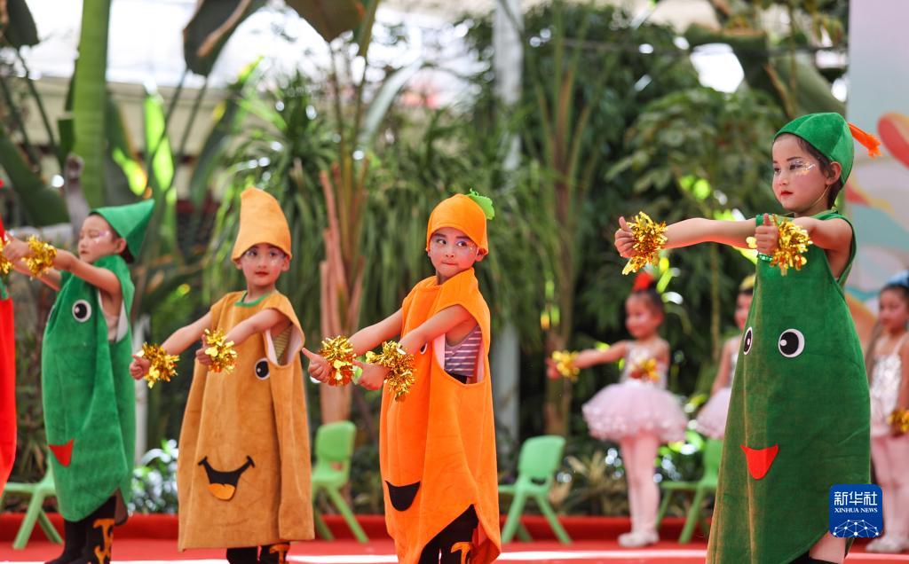 5月28日,小朋友在第十屆白朗果蔬采摘節(jié)開(kāi)幕式上表演節(jié)目。新華社記者 姜帆 攝