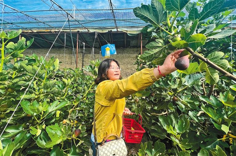 圖為市民在拉薩市達孜區(qū)純凈生態(tài)采摘園內采摘無花果。記者 潘多 攝