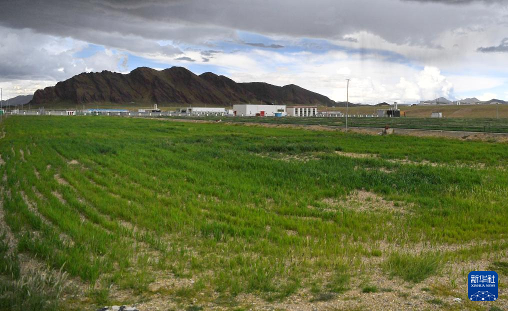 措勤縣高原生態(tài)畜牧業(yè)現(xiàn)代化養(yǎng)殖一體化產(chǎn)業(yè)綜合基地合作社人工草場和遠處的產(chǎn)業(yè)園區(qū)廠房(8月19日攝)。新華社記者 張汝鋒 攝