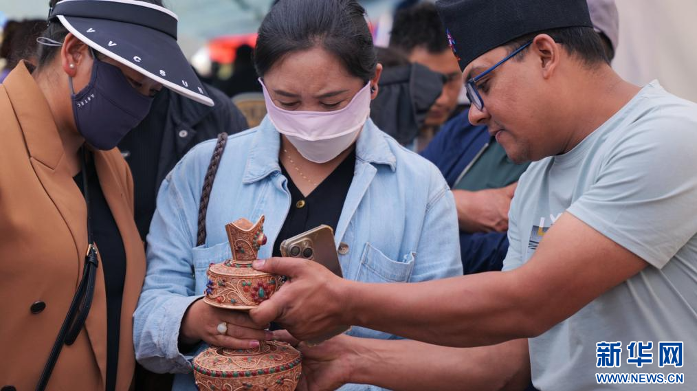 圖為展銷會(huì)現(xiàn)場(chǎng)群眾在尼泊爾商戶展區(qū)(8月25日攝)。新華網(wǎng) 柑丹鴦琦 攝