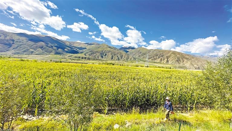 “石頭撿完了,土地也可以澆灌了。今年5月,我們開始在雅魯藏布江沿岸嘗試種植玉米?!甭逯檫_(dá)瓦說。為了讓玉米長(zhǎng)勢(shì)更好,他們將牲畜糞便作為改善土壤的有機(jī)飼料,增加土壤的肥沃度。經(jīng)過四個(gè)月的不斷努力,玉米終于長(zhǎng)到了一米多高。