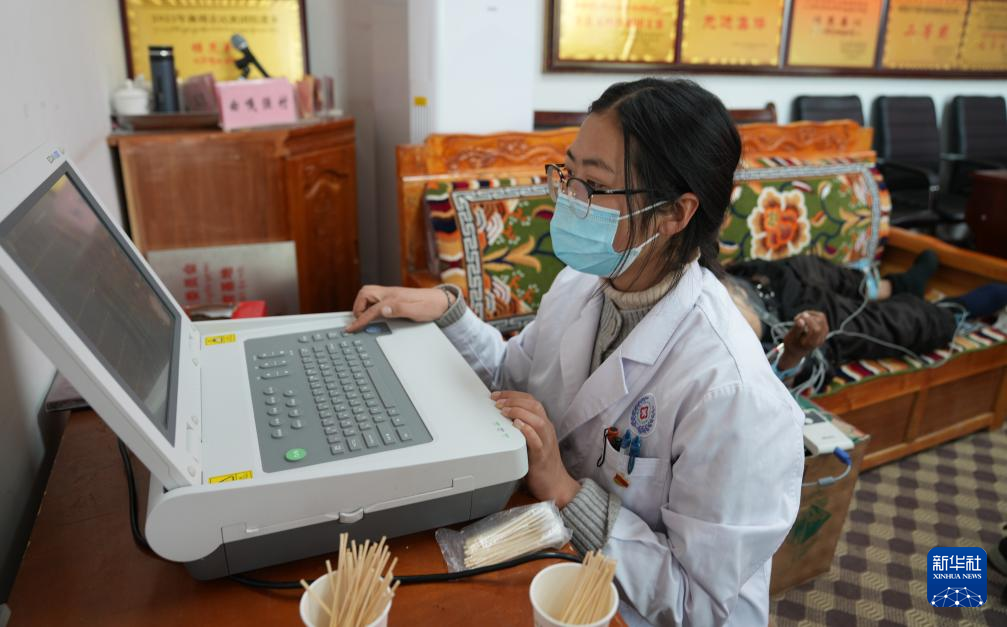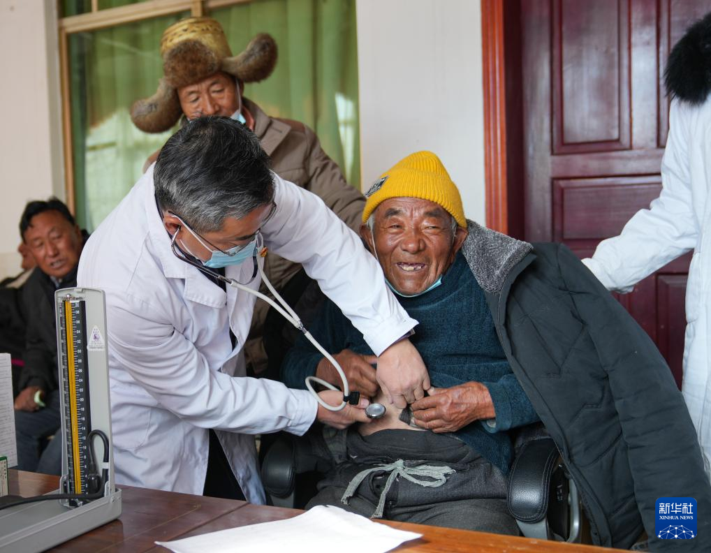 1月24日,西藏大學(xué)醫(yī)學(xué)院的研究生給患者檢查身體。新華社記者 晉美多吉 攝