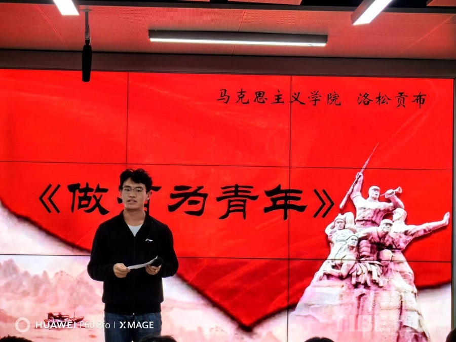 洛松貢布,出生于西藏自治區(qū)昌都市洛隆縣,現(xiàn)在是首都師范大學(xué)馬克思主義學(xué)院的學(xué)生。受到老成員的邀請,洛松貢布在大二期間就成為“京城藏韻”公眾號的成員之一,從事活動的組織和協(xié)調(diào)工作。相信對于很多在京求學(xué)工作的藏族年輕人來說,“京城藏韻”并不陌生,除了定期為西藏青年提供信息資訊以外,還成為了許多藏族學(xué)子在北京的“家”?!熬┏遣仨崱笔窃诰┎刈鍖W(xué)生們自發(fā)性的群眾組織,已經(jīng)舉辦過多屆神牛杯足球賽、巴扎杯籃球賽和羚羊杯鍋莊舞大賽。洛松貢布牽頭舉辦的“強(qiáng)國有我青春有為”的演講比賽是第一屆,未來還將繼續(xù)舉辦下去。通過豐富多彩的課外活動,藏族青年們在這里共同成長、共同進(jìn)步。