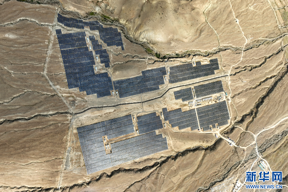 圖為110千伏協(xié)合措美縣20兆瓦(MW)并網(wǎng)光伏電站(無人機(jī)照片)。新華網(wǎng) 旦增努布 攝