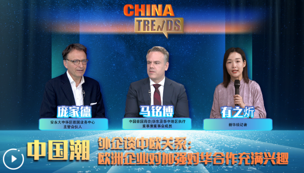 本期《中國潮》訪談邀請中國德國商會|華東及華中地區(qū)執(zhí)行董事兼董事會成員馬銘博、安永大中華區(qū)德國業(yè)務(wù)中心主管合伙人龐家德,圍繞中國經(jīng)濟(jì)發(fā)展趨勢、中歐關(guān)系、外企在華投資等主題進(jìn)行討論。他們對中國經(jīng)濟(jì)發(fā)展有信心、有耐心,表示歐洲企業(yè)對加強(qiáng)對華合作充滿興趣。