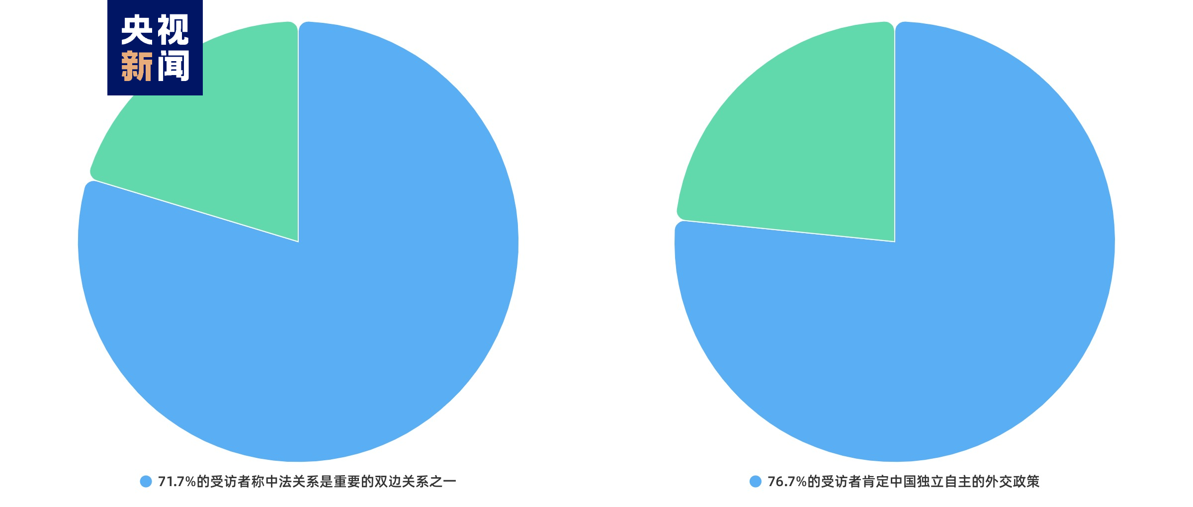 調(diào)查中,71.7%的受訪者認(rèn)為中法關(guān)系是全球重要的雙邊關(guān)系之一;61.6%的受訪者對(duì)中法關(guān)系未來(lái)的發(fā)展表示樂(lè)觀,期待雙方進(jìn)一步加強(qiáng)在經(jīng)貿(mào)、科技等領(lǐng)域的合作;65.1%的受訪者認(rèn)為,中法在國(guó)際事務(wù)上的密切合作有利于促進(jìn)世界和平與發(fā)展。