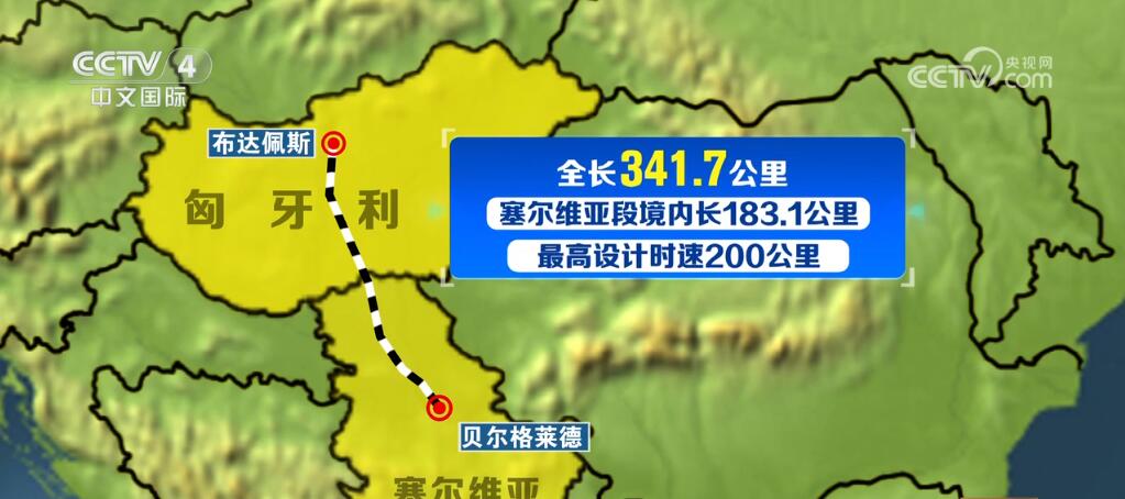 匈塞鐵路起自塞爾維亞首都貝爾格萊德,終至匈牙利首都布達佩斯,全長341.7公里。其中,塞爾維亞段境內(nèi)長183.1公里,最高設計時速200公里。