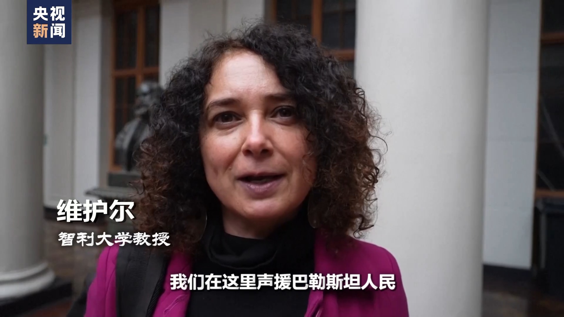智利大學教授 維護爾:我們在這里聲援巴勒斯坦人民,并譴責針對平民,尤其是婦女兒童所進行的人權(quán)侵犯。