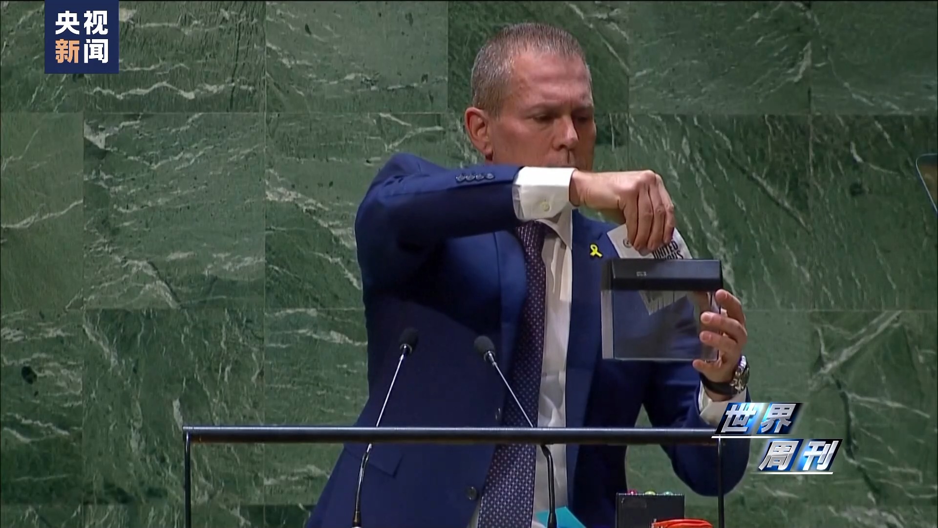 值得一提的是,聯(lián)大會場上還出現(xiàn)了驚人的一幕:以色列常駐聯(lián)合國代表埃爾丹掏出小型碎紙機,將《聯(lián)合國憲章》封面插入其中當眾粉碎。