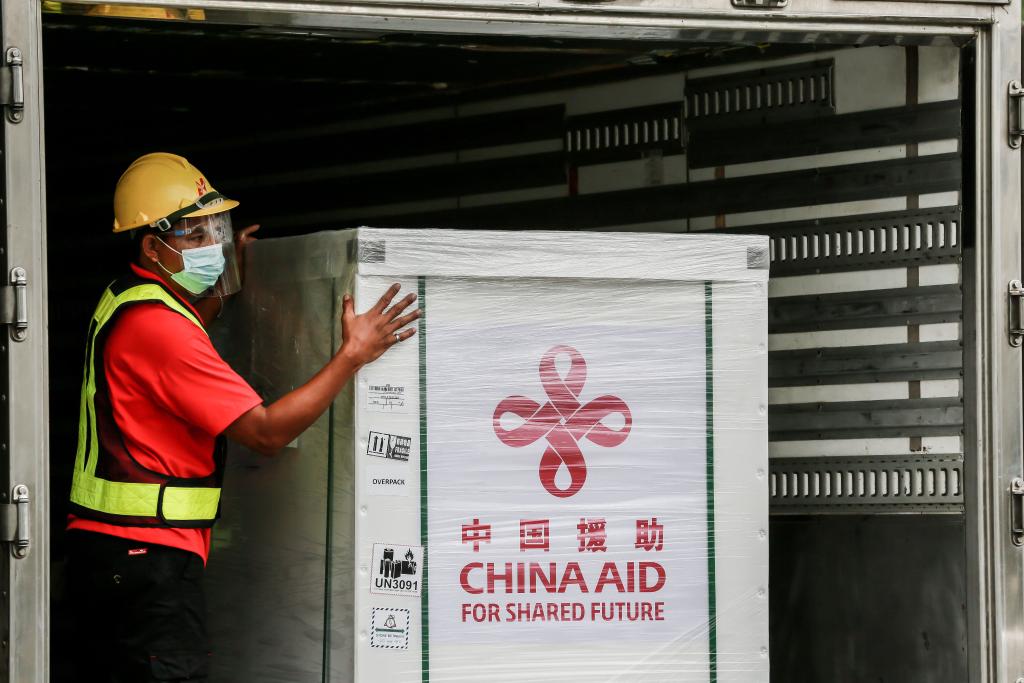 2021年3月24日,工作人員在菲律賓馬尼拉國際機場搬運科興疫苗。新華社發(fā)(烏馬利攝)