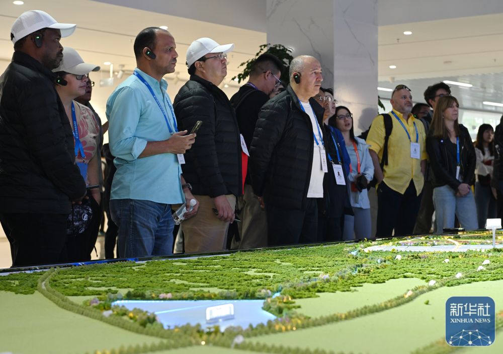 10月15日,與會(huì)嘉賓在國家能源集團(tuán)龍?jiān)赐卖敺履茉从邢薰緟⒃L時(shí)與工作人員交流。 新華社記者 李明 攝