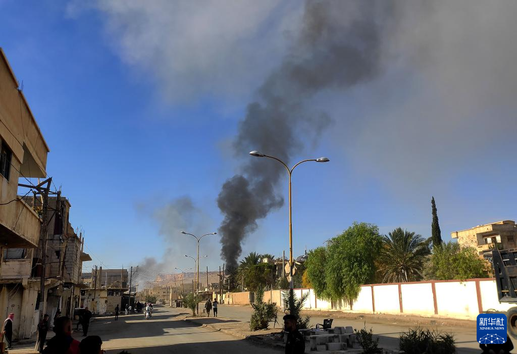 11月20日,敘利亞巴爾米拉市遭空襲后升起濃煙。新華社發(fā)