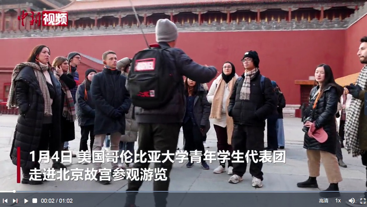 1月4日,美國(guó)哥倫比亞大學(xué)青年學(xué)生代表團(tuán)走進(jìn)北京故宮參觀游覽,感受中國(guó)古代皇家宮殿建筑群的魅力。2025年新年伊始,美國(guó)哥倫比亞大學(xué)青年學(xué)生代表團(tuán)于元旦當(dāng)天抵達(dá)北京。他們將在中國(guó)停留10天,相繼訪問(wèn)北京、西安和上海等多個(gè)城市。代表團(tuán)由哥倫比亞大學(xué)國(guó)際事務(wù)和公共管理專業(yè)的27名碩士研究生組成,他們分別來(lái)自全球17個(gè)國(guó)家。該代表團(tuán)在北京體驗(yàn)傳統(tǒng)的“三件套”——長(zhǎng)城、故宮和烤鴨。西安和上海也為他們量身定制了參訪行程。青年學(xué)生們期待著通過(guò)這次訪華加深對(duì)中國(guó)各地的了解,與中國(guó)青年交流互動(dòng),成為好伙伴、好朋友。(記者 卞正鋒 制作 王佳琪)