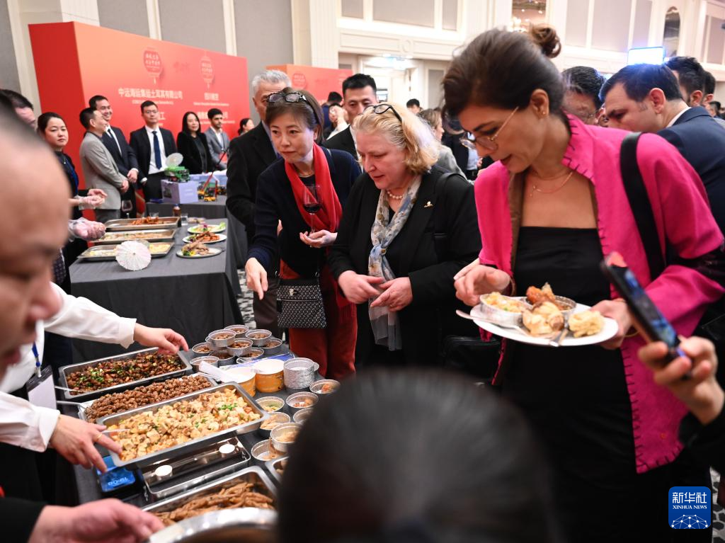1月19日,在土耳其伊斯坦布爾,來(lái)賓在中國(guó)駐伊斯坦布爾總領(lǐng)館舉辦的新春招待會(huì)上品嘗美食。新華社記者 劉磊 攝