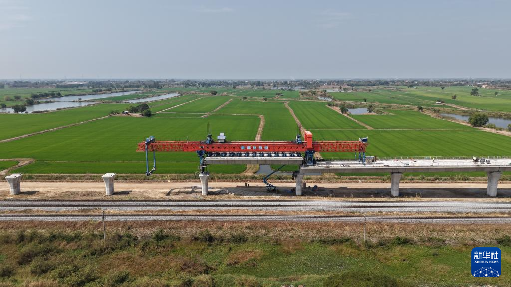 這是1月30日在泰國大城府拍攝的中泰高鐵項目4-3標(biāo)段施工現(xiàn)場(無人機照片)。新華社記者 孫瑋彤 攝